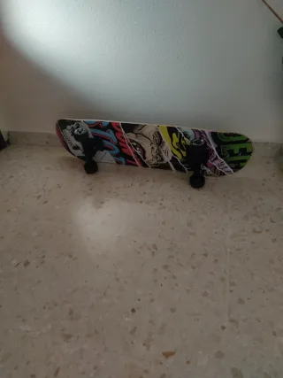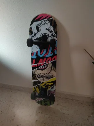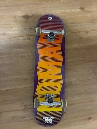 Skate de la marca Nomad en buen estado y con poco uso. - Diseño llamativo en morado y naranja. - Ruedas en buen estado.