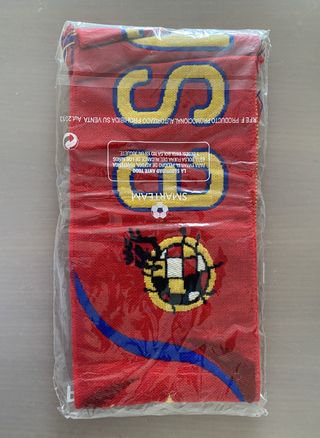 Bufanda de la selección española de fútbol. Producto oficial de la Real Federación Española de Fútbol (RFEF). Nueva, a estrenar; aún en su bolsa/envase original sin abrir. Entrega en mano o envío a través de Wallapop