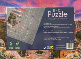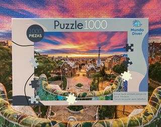 Puzzle Parque Güell, Barcelona de 1000 piezas. Marca: Mundo Diver. Dimensiones: 69 x 51 cm. Dimensiones caja: 42 x 27 x 5,5 cm. En perfecto estado (usado 1 vez). Entrega en mano o envío a través de Wallapop