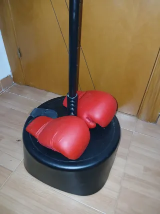 Par de guantes de boxeo de color rojo. Más base de boxeo - Material sintético. - Cierre de velcro.
