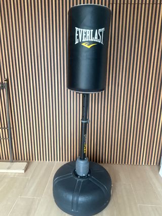 Saco de boxeo de la marca Everlast, modelo Omniflex. Diseñado para entrenamiento. - Base ancha para mayor estabilidad. Se puede rellenar con agua o con arena. - Altura ajustable. - Superficie de golpeo de polipiel de alta calidad.