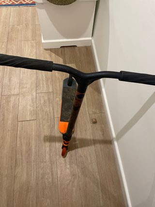 Patinete eléctrico de color negro, ideal para desplazamientos urbanos. patín eléctrico perfecto estado se vende con su cargador tal y como se ven las fotos le falta el patacabras y el guardabarros de atrás tiene el palito suelto pero por lo demás perfecto y anda perfecto autonomía dura se vende por no usar - Manillar con puños. - Plataforma para los pies. - Rueda delantera y trasera.