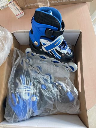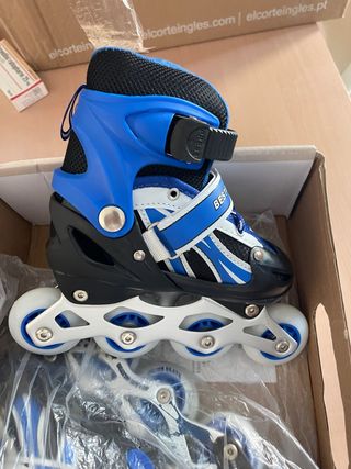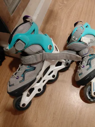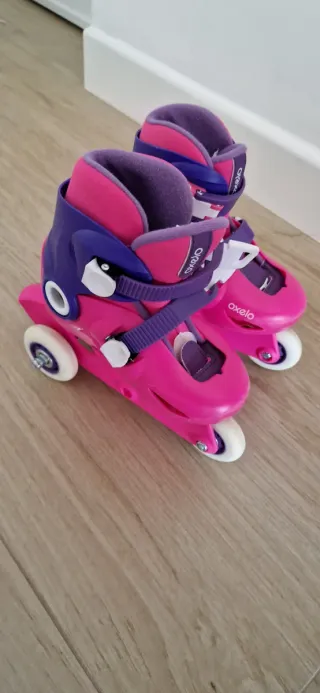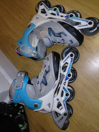 Patines en línea Oxelo, ideales para aprender y divertirse. Son ajustables para adaptarse al crecimiento. - Talla ajustable de la 34 a la 36. - Cierre de hebilla y velcro para un ajuste seguro. - Ruedas de poliuretano.
