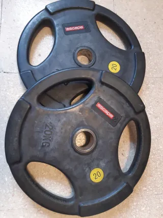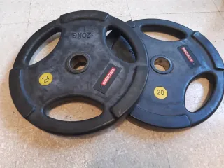 Conjunto de discos de pesas de hierro fundido, ideales para barras de 25 mm. - Material: Hierro fundido. - Peso: 2.2 kg cada disco. 4 unidades - Peso: 1.1 kg cada disco. 4 unidades - Diseño clásico con agujero central.