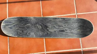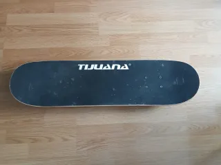 Tabla de skate negra. - Superficie con lija. - Agujeros para tornillos de montaje. -Desgaste notable pero funciona perfectamente