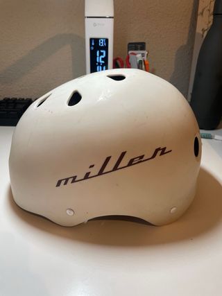 Casco de skate de la marca Miller en color blanco. Por fuera esta un poco manchado, pero esta sin uso. Se vende porque no es la talla correcta - Color blanco. - Marca Miller.