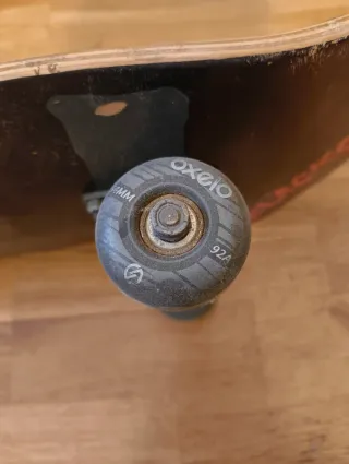 Skate con diseño gráfico en la parte superior. - Superficie de agarre negra. Ruedas Oxelo practicamente nuevas