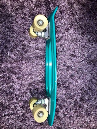 Skate de color turquesa, ideal para niños. - PRECIO NEGOCIABLE - Diseño de plástico resistente. - Ruedas amarillas. - Superficie con relieve para mayor agarre.