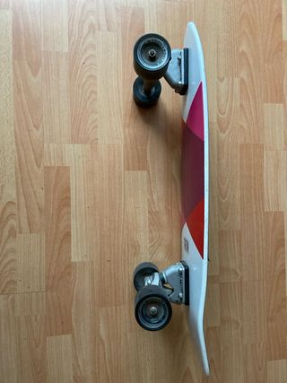 Skate Carver modelo Surfrider con un diseño llamativo. - Tabla clásica de los inicios del skate, cuando había más surf que calle en el deporte. Pero con rocker en el nose y tail para hacerla más cómoda y manejable. - Perfecta como Cruiser o surfskate reactivo. - Ejes Carver C5 - Ruedas Cinetic usadas, pero funcionales (son las que venían con las tablas Yow). - Rodamientos Abec 7 que venían con la Happy de Carver. La tabla y los ejes están nuevos y en perfecto estado.