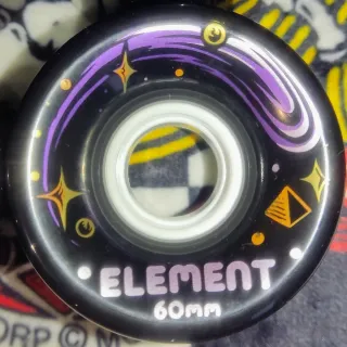 Ruedas de skate de la marca Element con un diseño espacial. - Diámetro de 60 mm. - Diseño con estrellas, planetas y pirámides. - Color base negro con detalles morados y naranjas. Se vende o se escuchan ofertas razonables para cambio por material skate Old School preferiblemente. antiguo stock, vintage, retro, clásico, Old School, you carver, smoothstar, santa cruz, santa Mónica, slide, skate, skateboard, longboard, Cruiser, surf skate, monopatín, patineta, powell peralta, variflex, varisurf, Bones, enuff, zorlac, Madrid krux, ace, thunder, bbc, element, choke, california pro, nkx, Amaya, independent, jart, cruzade, creat ure, Gordon