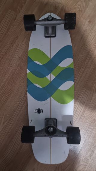 Surf skate preparado con ejes Carver originales y rodamientos China Bones. La tabla es muy entretenida y por el tamaño de las ruedas coje bastante velocidad. Vendo por no usar