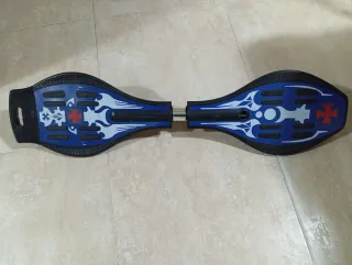 Waveboard de dos piezas con diseño deportivo en color azul. - Plataformas con superficie antideslizante. - Ruedas giratorias de 360 grados. - Eje de conexión metálico.