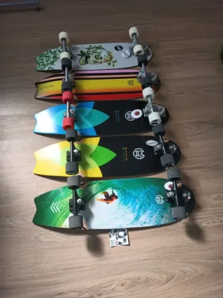 Surf skates nuevos ,tabla de madera canadiense,lija black grip tape,ejes delantero basculante 6.25" CA truck,rodamientos abec9,ruedas 68mm ×51mm 90" lo mejor para surfear cuando no hay olas ,dos medidas de largo 77cm y 82cm.el.precio es por unidad