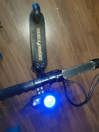 Patinete eléctrico Skate Flash SK2 con una autonomía de 41 km y batería de 15 Ah. - Diseño moderno y robusto. - Ruedas de alta durabilidad. - Manillar ajustable en altura. Tiene una fallait de la llave ya que se cayo el patin y se quede con la lecture de la llave pero funciona perfecto mejor venir à ver tiene como unos 31km de autonomia. Se vende sin soporte de movil y sin cargador(es el de un xiaomi) se le puso una batería adicional para tener mas autonomia tiene motor trasero PRECIO NEGOCIABLE URGE VENTA