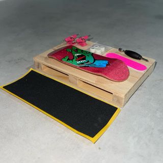 REGALO PEGATINAS EN TODOS LOS PEDIDOS ‼️ Fingerboard de madera 34 mm Incluye todo lo que ves en la foto - Palet en miniatura - Tabla fingerboard - Ejes - Ruedas - Lija / tape - Tornillos - Tuercas - Lija para montar - Herramienta de montaje Pack fingerskate finger board skate