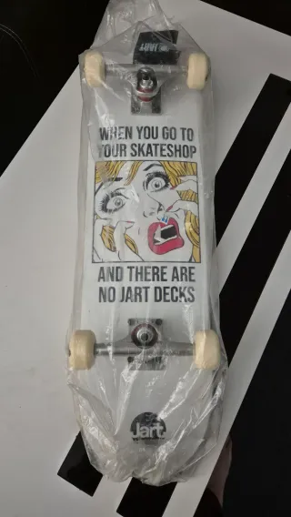 Tabla de skate marca Jart original, modelo "MEME" en su embalaje, sin abrir y con etiquetas. Este patín cuesta en tienda unos 110 euros. Ruedas jart 52. Width: 8.0” Height: 31,85” Trucks: Iron 5.25 High Wheels: 52mm 100A Bearings: Abec 7 Bearings
