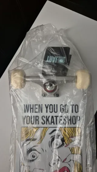 Está prácticamente a estrenar todo ,la tabla es jart y los ejes independet . Lleva ruedas y rodamientos de marca y la lija está nueva