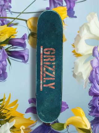 Tabla de skate Jart con diseño de flores en cono de helado, logo en la parte superior y lija Grizzly. La tabla perteneció a mi ex, quien afirmaba ser una figura medio conocida en el mundo del skate, con patrocinios y una carrera digna de documental. Verificado en internet: pura ficción. Presenta desgaste visible, el justo: como yo tras esta relación, dañada pero no mucho. No puedo garantizar que sirva porque no tengo ni pajolera idea de skate pero aparentemente parece más firme y segura que los valores y principios del cucaracho. Estoy segura de que este cacho de madera es más merecedora de una segunda oportunidad! Precio n