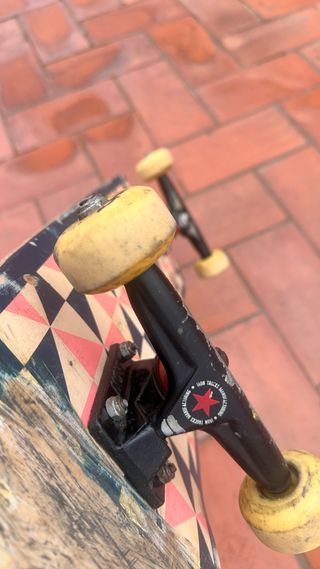 Skate completo. Está rayado del uso, pero no tiene demasiado, la madera está en perfecto estado, la lija está un poco sucia pero agarra mucho ya que tiene poco uso. - Diseño de tabla marca JART - Ruedas marca Imagine - Ejes marca iron trucks - Todos los rodamientos - Anchura 7,8 pulgadas