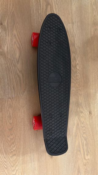 Mini patineta tipo penny en color rojo. Ideal para desplazamientos cortos y diversión. - Tabla de plástico resistente. - Ruedas de goma para un deslizamiento suave. Skate tipo penny, tamaño pequeño, ideal para niños o para empezar. Funciona correctamente, ruedas giran bien y no tiene roturas. Presenta desgaste estético por el uso (ver fotos). Ligero y fácil de transportar. Entrega en mano o envío por Wallapop.