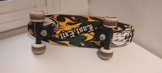 Skate Globe completo. Ha sido usado por un niño y tiene las marcas normales de uso, pero está en buen estado y con mucha vida útil. Es un skate de verdad, de marca reconocida, no un juguete, ideal para que los más pequeños aprendan correctamente desde el inicio. Gracias a su tamaño reducido (6,5" no vas a encontrar una skate real más pequeño), es perfecto para niños de 4/5 años que empiezan a patinar. Lija de goma EVA, pensada para niños, que evita roces y abrasiones en la piel.