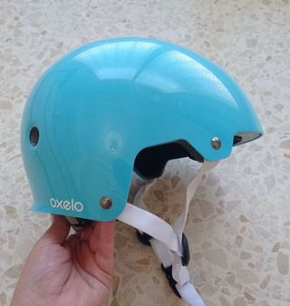 Casco de skate marca Oxelo. Cierre de correas ajustable. Ventilación con orificios. Peso 350-380 gr. Talla 50-54 cm. Esta nuevo, nunca se llego a usar, fue un regalo pero ya tenia otro. ///Tags de búsqueda: patinete skateboard roller bicicleta asco rodilleras coderas guantes muñequeras casco integral protector bucal zapatillas vulcanizadas tabla ruedas hoodie pantalones jeans suela antideslizante gafas deportivas mochila\\\