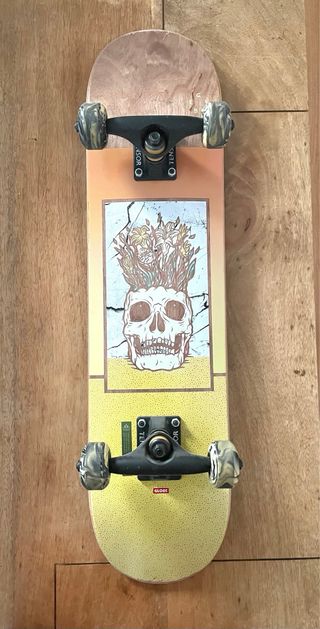 Skate completo con ejes Independent. - Diseño gráfico llamativo en la tabla. - Ruedas de color naranja y amarillas. - Ejes de marca Independent.