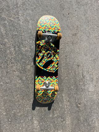 Skate de la marca Cliche con diseño llamativo. - Tabla con diseño gráfico. - Ejes metálicos. - Ruedas de skate.