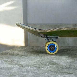 Patineta compacta y resistente, ideal para paseos cortos, niños o como skate de iniciación. - Tabla de plástico azul. - Ruedas amarillas. - Ejes metálicos.