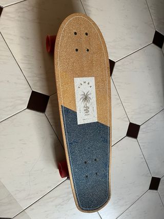Skate eléctrico con cubierta de bambú. - Dos motores integrados. - Diseño de doble kicktail. - Ruedas de alta resistencia. - 30kmh - 10km/15km de autonomía dependiendo del peso del rider