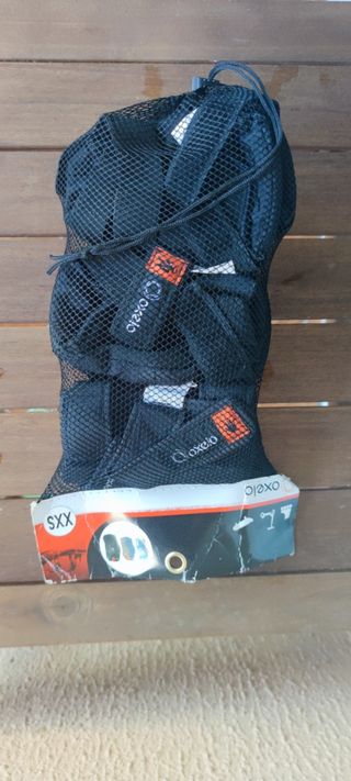 Conjunto de protecciones básicas para las primeras sensaciones de deslizarse de tu hijo/a. Comodidad y seguridad para iniciarse en roller, patinete o skate. Muñequeras, coderas y rodilleras, lo básico para iniciarse con seguridad. Su banda autoadhesiva permite ajustar la talla. Talla XS Entrego en su bolsa. Apenas se han usado