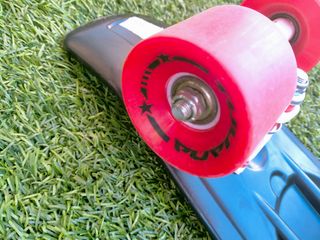 Monopatín estilo retro con ruedas rojas. - Ruedas de color rojo. - Diseño clásico.