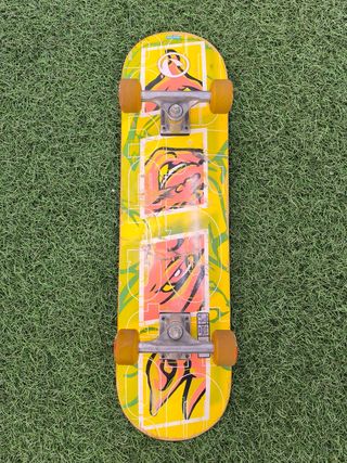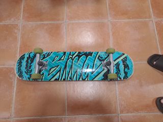 Skate urbano de la marca Birdhouse, con diseño de Tony Hawk. - Tabla con lija negra. - Ruedas amarillas. - Ejes metálicos. • Tipo: skate completo (tabla + trucks + ruedas) • Estado: usado, con señales de desgaste (arañazos, pintura descascarada) • Ruedas: originales, ya usadas • Trucks: en buen funcionamiento • Listo para usar, ideal para iniciarse o para quien busca segundo skate. Nuevo vale 100€