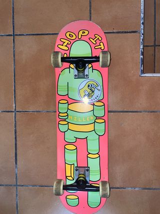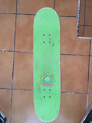 Skate en buen estado, con muy poco uso. Ideal para iniciarse en el mundo del skate. - Diseño llamativo con estampado. - Ruedas y ejes en buenas condiciones.