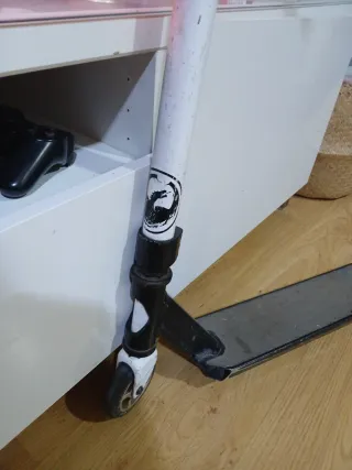 Patinete de Decathlon en color blanco y negro. - iniciación en skate park - Ruedas de goma rodamientos ab5 - Plataforma antideslizante.