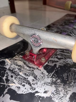 Skate completo listo para usar o para piezas. Tabla Welcome 8'75 creo muy gastada en el tail Ejes independent 159 usados pero en buen estado (para rampa pero tampoco exagerado) Ruedas prácticamente sin usar ENUFF 58mm 85a (medio blandas) Rodamientos en mal estado