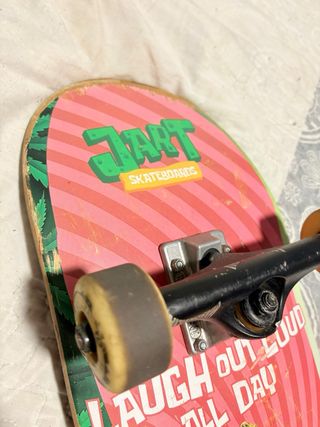 Skate completo de la marca Jart, listo para usar. - Tabla Jart. - Ejes Venture. - Ruedas. Skate ideal para alguien que quiera empezar con un skate de verdad pero sin dejarse 120€ Los rodamientos giran perfectos