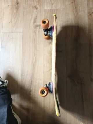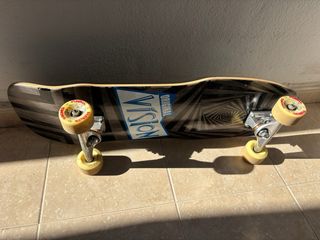 Vendo este skateboard porque fue una compra impulsiva y literalmente no lo he usado. Está cogiendo polvo y prefiero que alguien lo disfrute. Estado: 10/10. Ni un solo rasguño en la tabla. Las ruedas no han tocado el asfalto (ver fotos). Rodamientos y ejes perfectos.