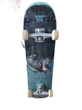 Skate completo de la marca Louw, listo para usar. Se encuentra en buen estado. - Diseño gráfico llamativo. - Ruedas y ejes montados. Skate completo y montado. Tabla: Louw (7.85”) Ejes: Venture Ruedas: Imagine Rodamientos: (no recuerdo la marca). El patín está en buen estado. Lo peor que está son los rodamientos, aun así todavía rueda sin problema.