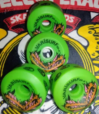 Set de 4 ruedas de skate Old School en color verde fluor. - Diseño con estampado de llamas y logo. - Dureza 95A. Se venden o se escuchan ofertas razonables para cambio por material skate Old School preferiblemente. antiguo stock, vintage, retro, clásico, Old School, you carver, smoothstar, santa cruz, santa Mónica, slide, skate, skateboard, longboard, Cruiser, surf skate, monopatín, patineta, powell peralta, variflex, varisurf, Bones, enuff, zorlac, Madrid krux, ace, thunder, bbc, element, choke, california pro, nkx, Amaya, independent, jart, cruzade, creat ure, Gordon Smith, globe, dog town, oneil, vans, sancheski, california team,