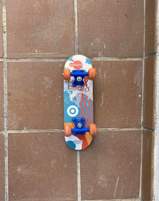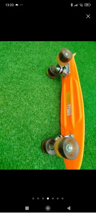 Skate de plástico naranja con ruedas negras. - Diseño clásico. - Superficie texturizada para mayor agarre. Usado un vez!