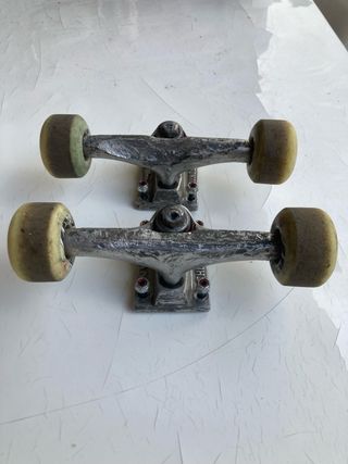Set de ejes de skate de 139mm, listos para montar. - Ejes thunder 139mm - Incluye 4 ruedas pig - Rodamientos bronson - Incluye tornillos independent/thrasher - Incluye llave para montaje (sin allen)