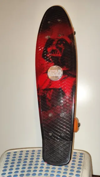 Skate con diseño de Star Wars, inspirado en Darth Vader. Ideal para coleccionistas o para quienes disfrutan de un estilo único. - Diseño temático de Star Wars. - Ruedas de color naranja.