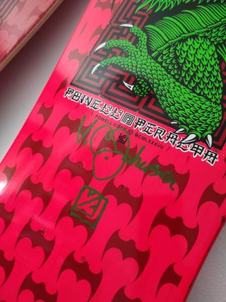 Espectacular tabla de skate Powell Peralta de la colección Dragon bats, firmada por el mismísimo VCJ. Muy difícil de conseguir en europa. Traída de la tienda Powell Peralta de california. ¡Una pieza única para coleccionistas! - Modelo: Dragon bats - Marca: Powell Peralta - Firma: VCJ - Estado: Impecable - backlight, se ilumina con luz ultravioleta.