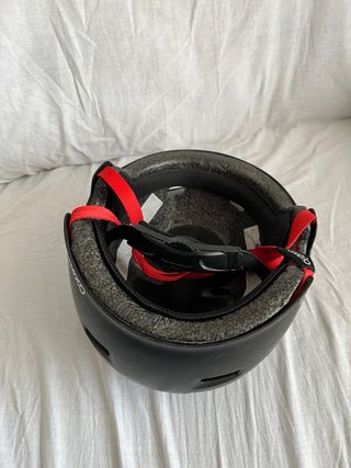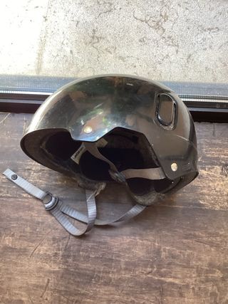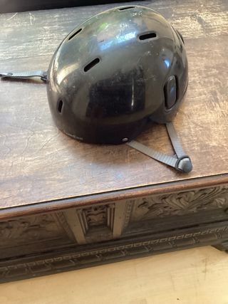 Casco negro para patinaje o skateboarding. Diseñado para proteger durante la práctica de deportes. - Correa ajustable para un ajuste seguro. - Interior acolchado para mayor comodidad.