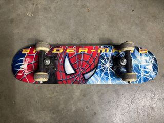 Skate con diseño de Spiderman 2. - Diseño de Spiderman en rojo y azul. - Ruedas y ejes negros.