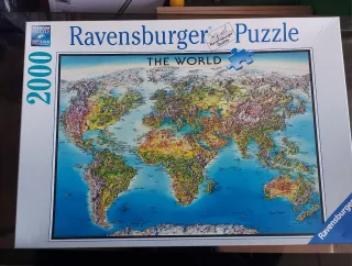 Puzzle de 2000 piezas de la marca Ravensburger con la imagen del mapa del mundo. Hecho 1 sola vez y cuidado y guardado perfectamente Puzzle limpio y libre de humo.