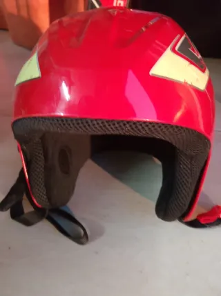 Casco de esquí de color rojo brillante, ideal para protegerse en las pistas. - Diseño aerodinámico. - Acolchado interior para mayor comodidad. - Cierre de seguridad. - Detalles reflectantes para mayor visibilidad.