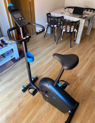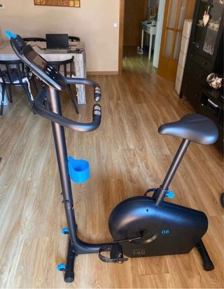 Bicicleta estática en excelente estado, con muy poco uso. Con sillín acolchado incluído. - Diseño moderno y compacto. - Soporte para botella integrado. - Pantalla digital con información de entrenamiento. No se envía. Recogida presencial.