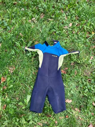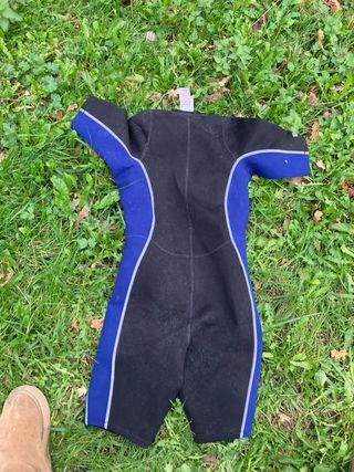 Traje de neopreno corto de la marca Tribord, ideal para actividades acuáticas. Diseñado para ofrecer comodidad y protección. - Color principal negro con detalles en azul. - Cremallera frontal completa. - Mangas cortas y perneras cortas.